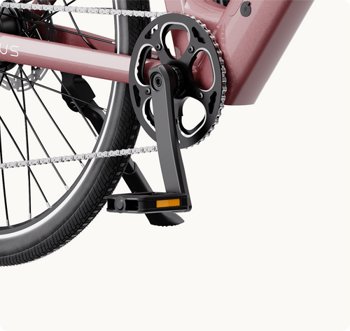 Absolutely! Venus features a low step-through frame and a slightly forward bottom bracket that improves leg extension while maintaining a low stand-over for confident stops. Recommended rider height: 4'11" – 6'2". Recommended inseam: 24.4" – 34.7".