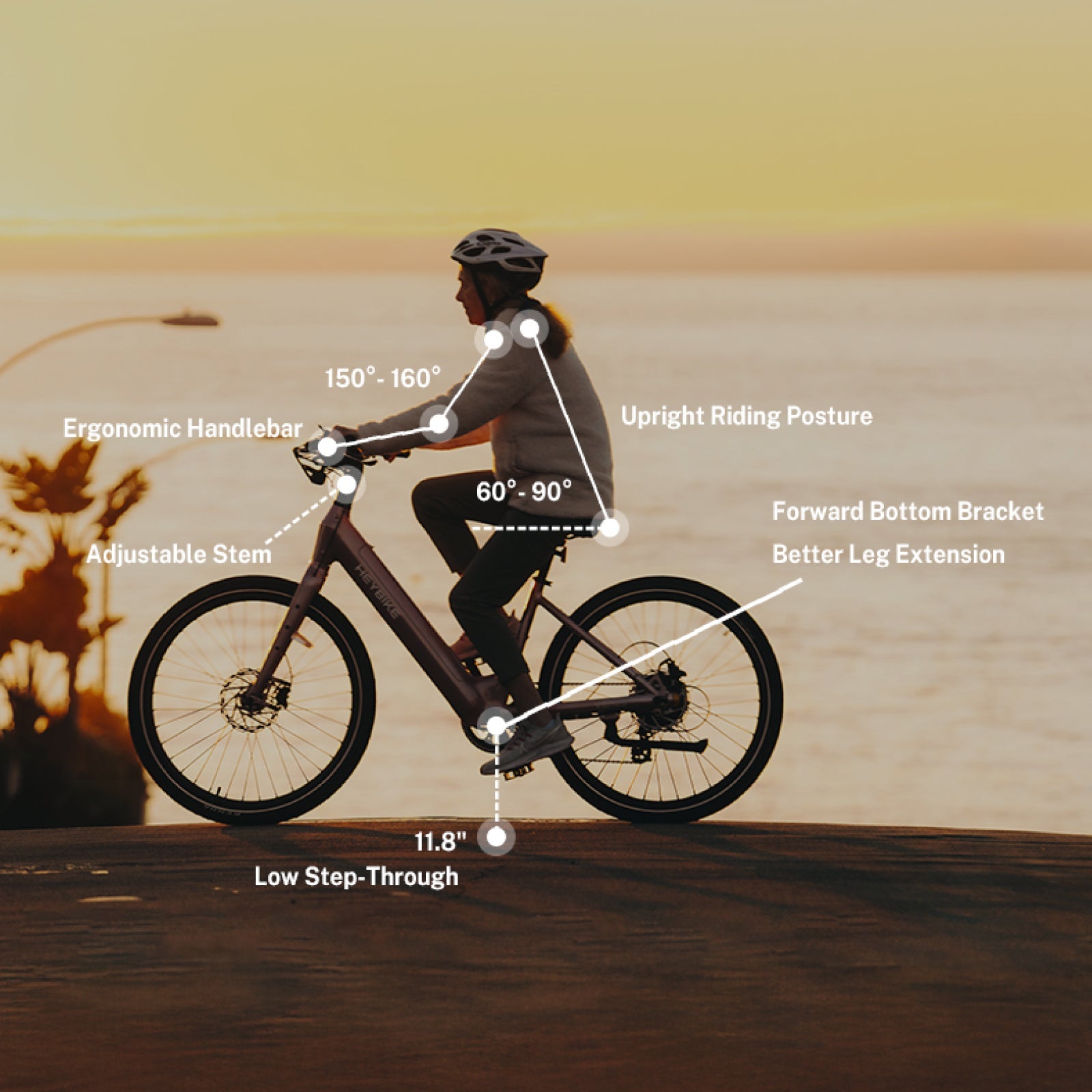 The low step-through frame, ergonomic forward bottom bracket, and 90° adjustable stem reduce strain on your back and wrists, while intuitive app and display controls make personalization effortless