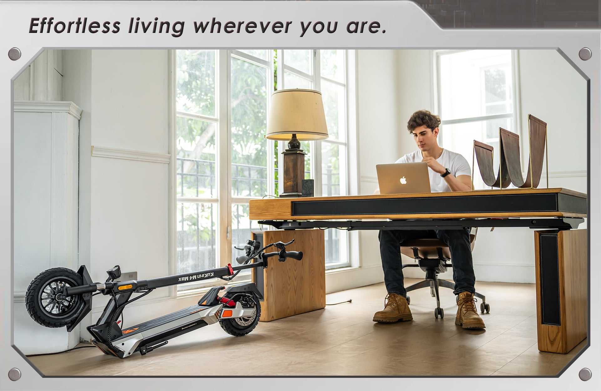 Conquer urban terrain with the KuKirin M4 Max Electric Scooter. Pro handling (double-suspension), sleek metal design, and safety lighting. Effortless rides from commutes to weekend exploration.
