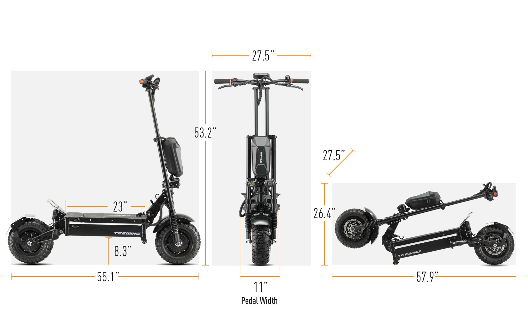 The Teewing Z4 Pro Electric Scooter redefines innovation and performance in the world of foldable electric scooters. Designed for speed, power, and versatility, this dual motor electric scooter with seat reaches up to 55 MPH and conquers 40° inclines effortlessly. Powered by an easily portable 60V 40Ah battery, it delivers an impressive range of up to 65 miles, making it ideal for both thrill-seekers and daily commuters.