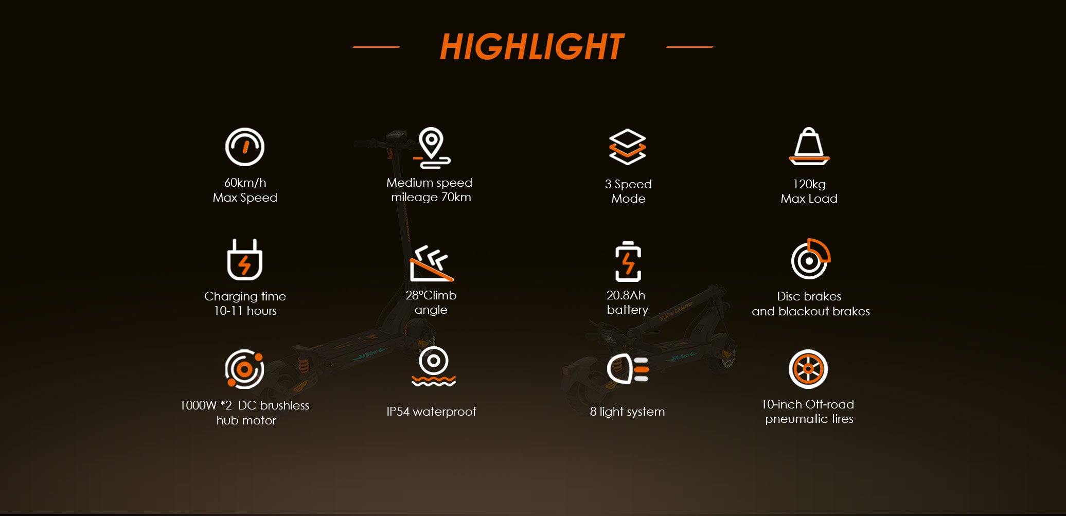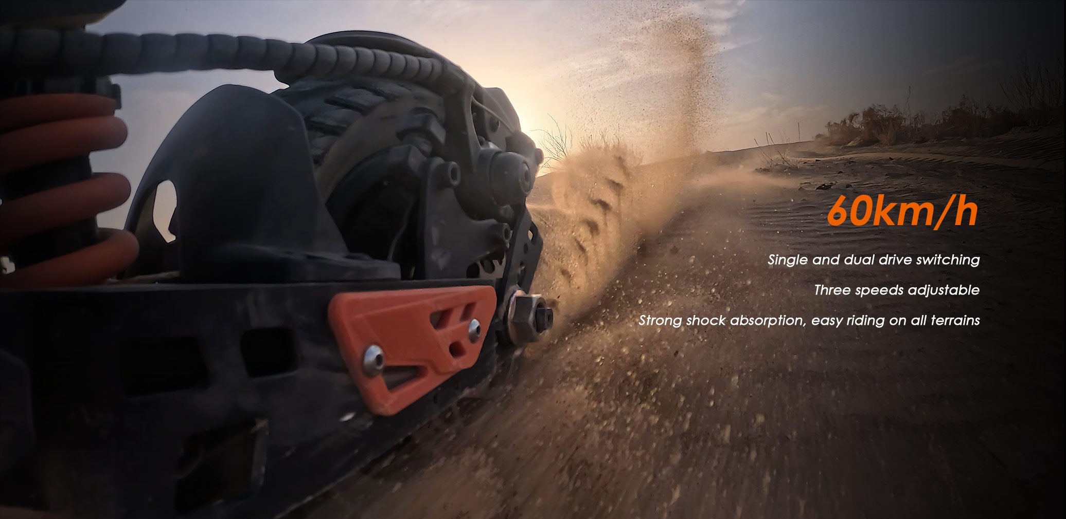 The 1000W high-performance dual-drive motors that provide strong power, making uphill climbing stress free and allowing drivers to travel more freely through all kinds of terrain,whether it’s flat road or the rugged trail,you can ride with ease.In addition,the dual-drive motors provide better maneuverability and stability,making the driver safer and more comfortable in the driving process.