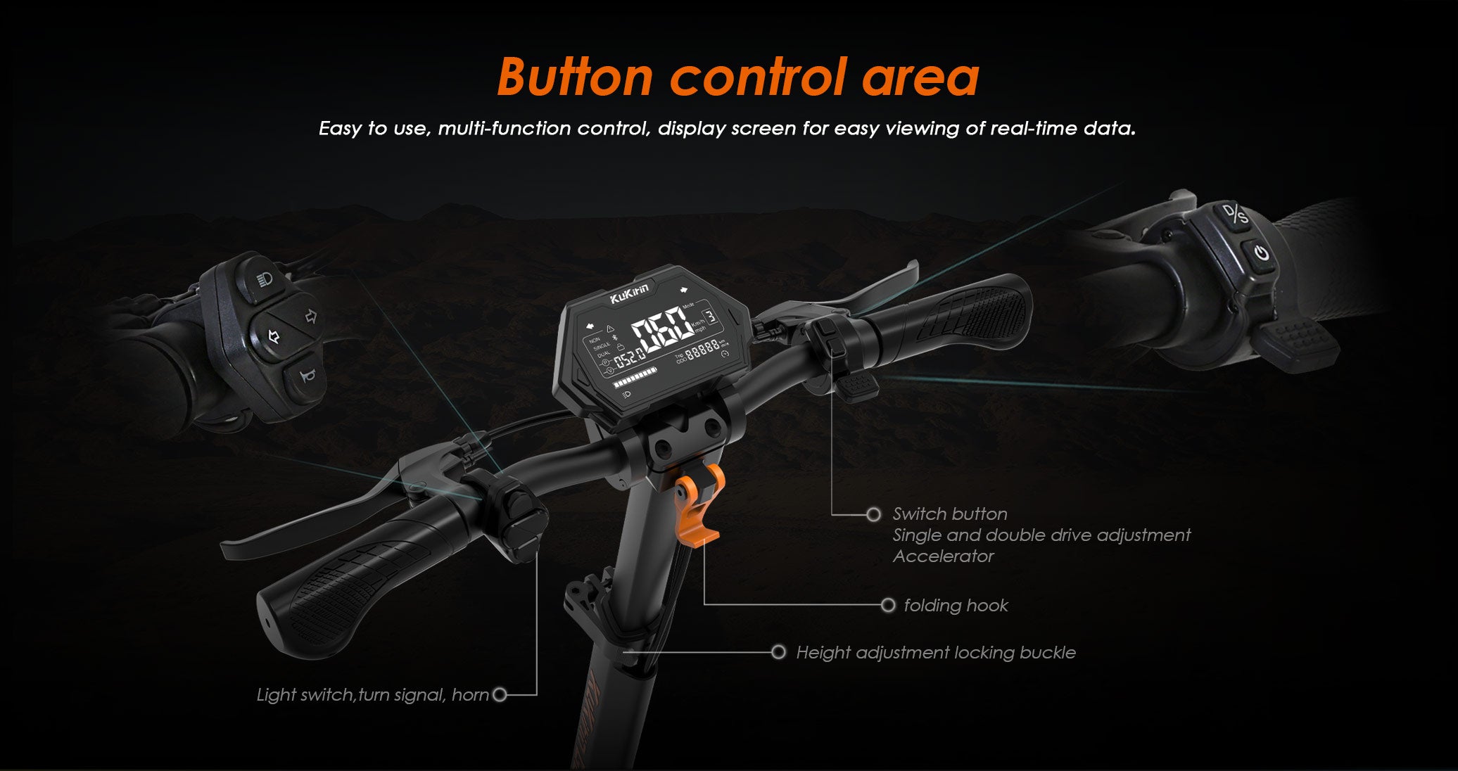 The ultra-large display with high definition provides a more detailed image and text display,allowing the driver to view various scooter information and opeartion interface more clear.Driver can control the driving speed and direction on electric scooter through simple operation,which is easy to opearte and fun to drive,providing a better driving experience for customer.