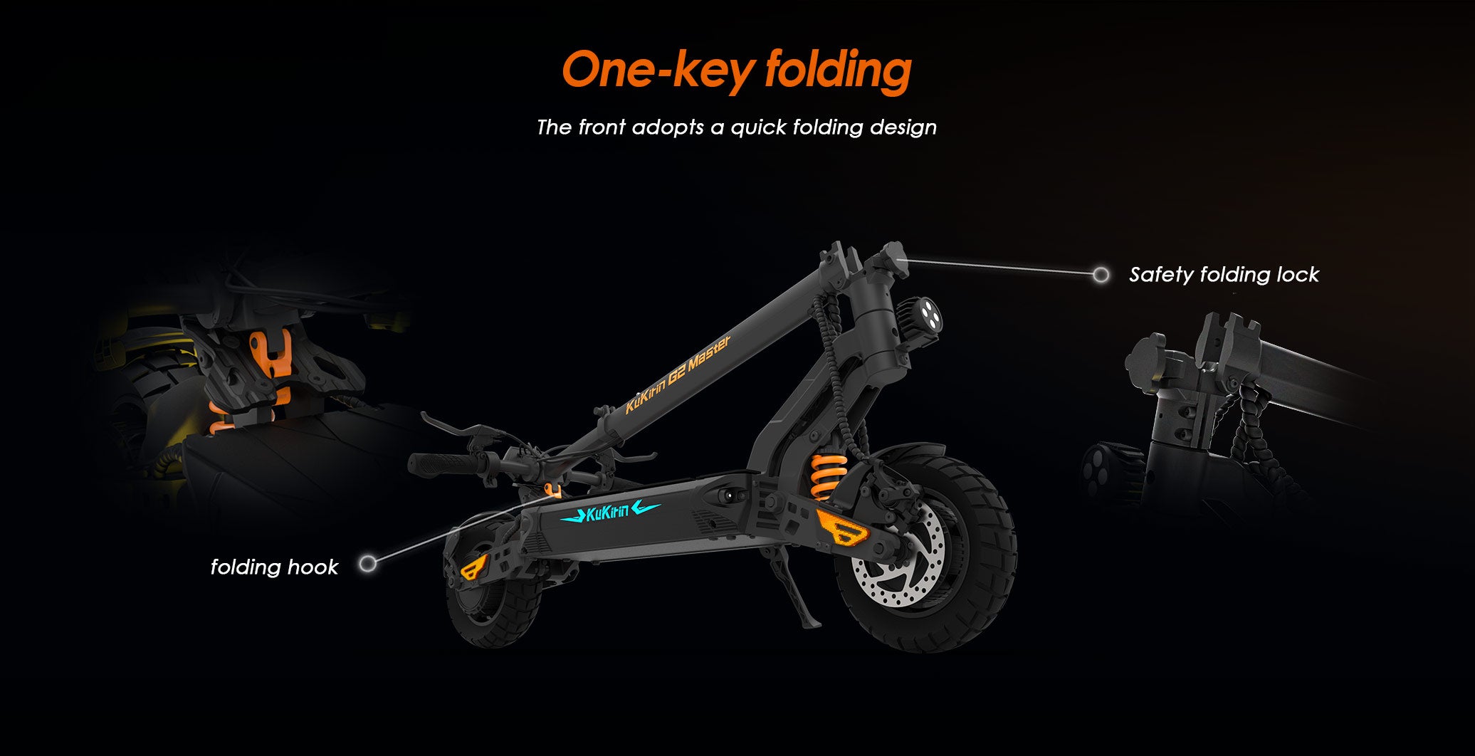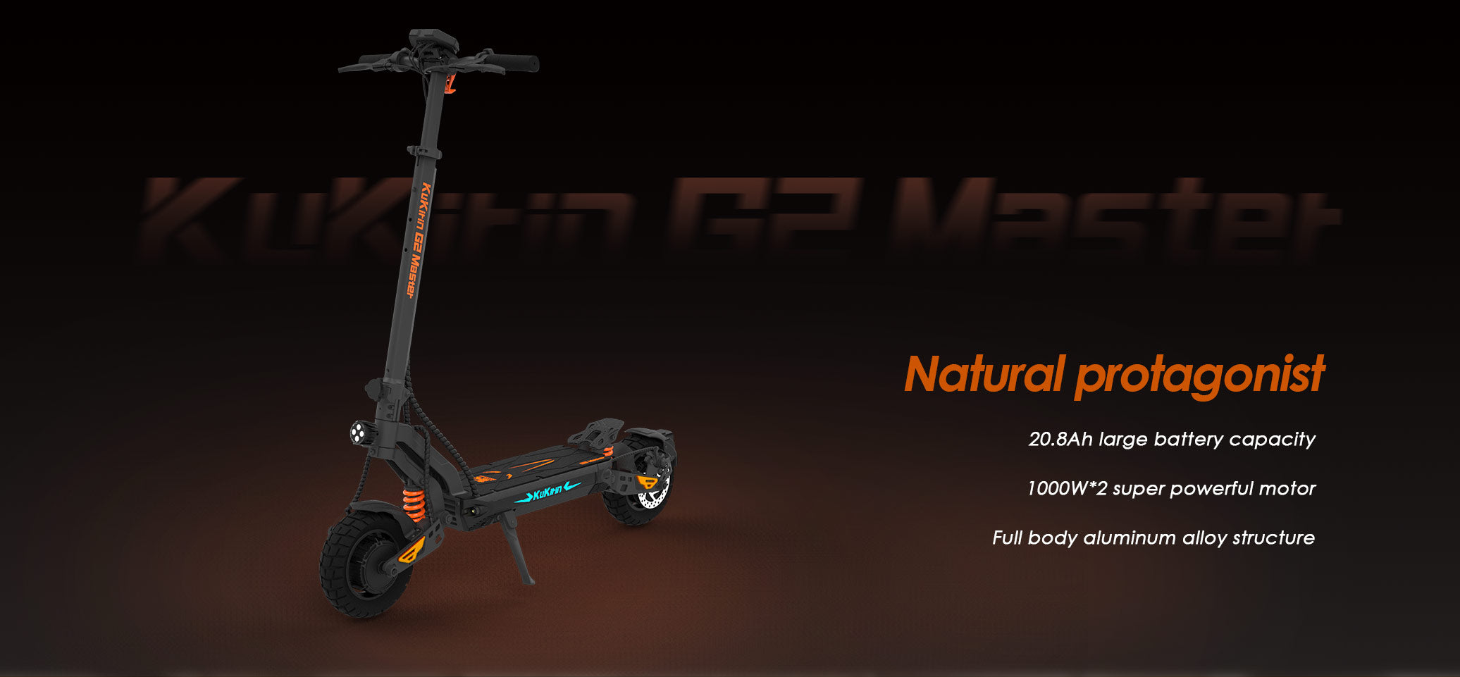 KuKirin G2 Master is made of high-quality aluninum alloy,which makes it’s structure is straong and durable.The strong scooter frame coupled with coupled with a customized folding system provides folding and unfolding stability and enhances the bodywork's structural strength.This makes the motorized scooter more rugged and able to withstand a variety of usage environments.