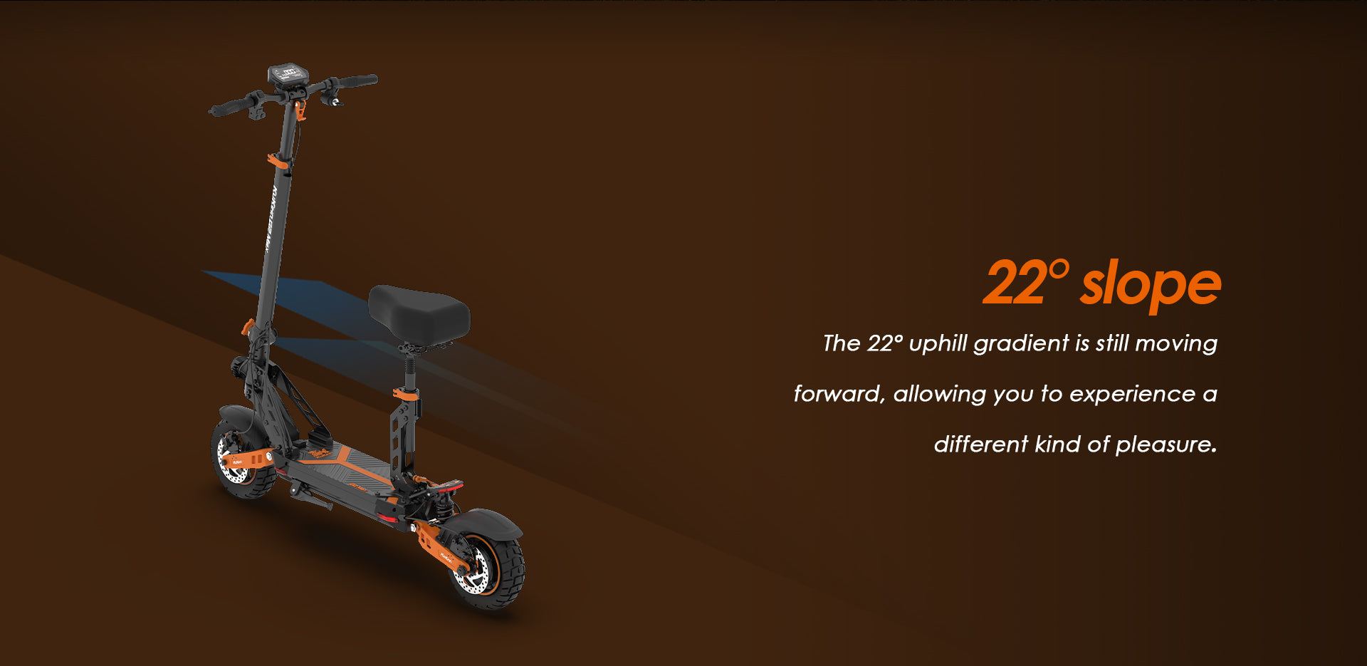 KuKirin G2 Max uses 1000W super-powerful motor, the maximum climbing degree reaches an amazing 22 °, can fully meet the more complex, more bumpy road conditions, so that you no longer worry about climbing and wading.