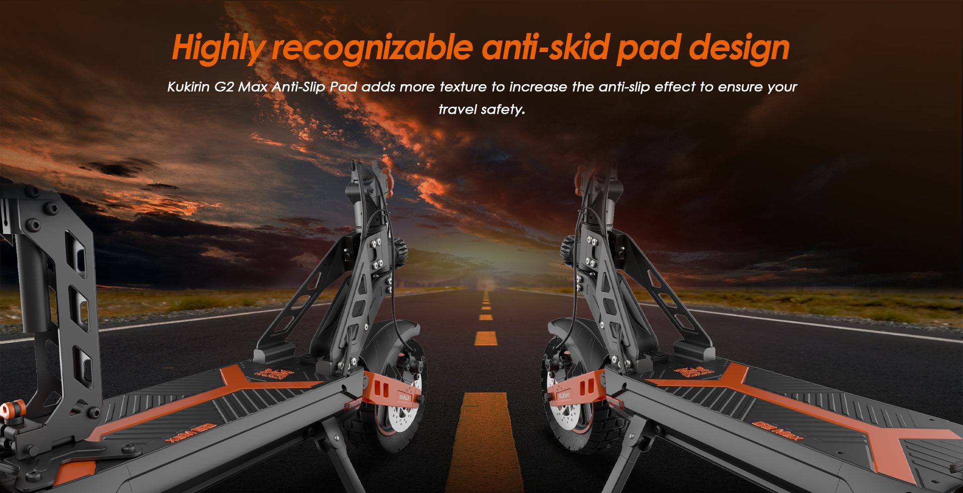 KuKirin G2 Max with precisely tuned spring dampers to cushion bumps from complex terrain, you can ride it over rough roads to maximize your fun and enjoy a comfortable ride every time you set out.