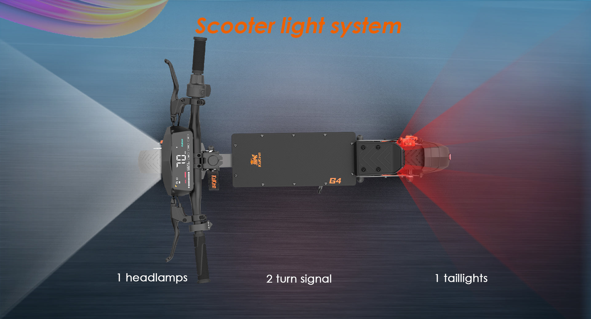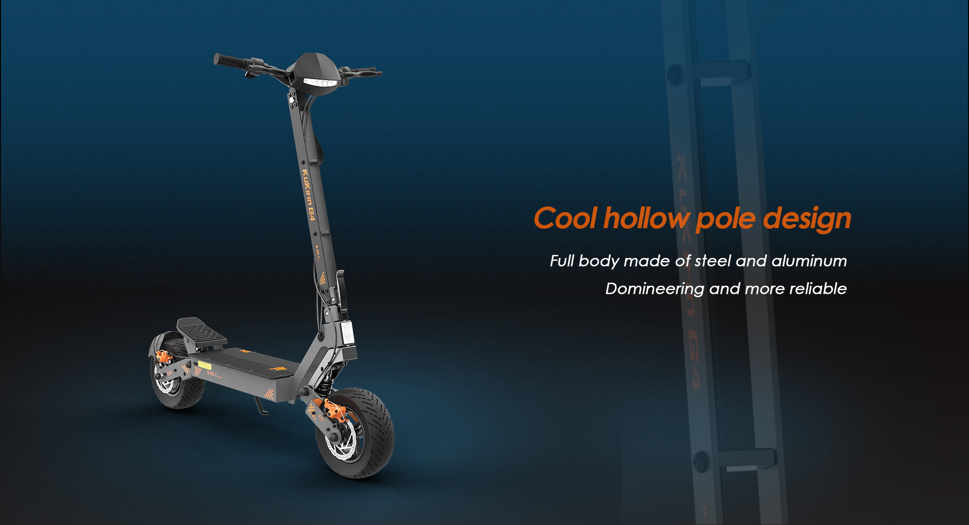 KuKirin G4 stud adopts hollow shape design, which retaining the original section division, compact and simple body, showing speed and strength. It pursues high appearance while achieving better wind breaking results, pushing the speed and power aesthetics of high-power electric scooters to a new level.