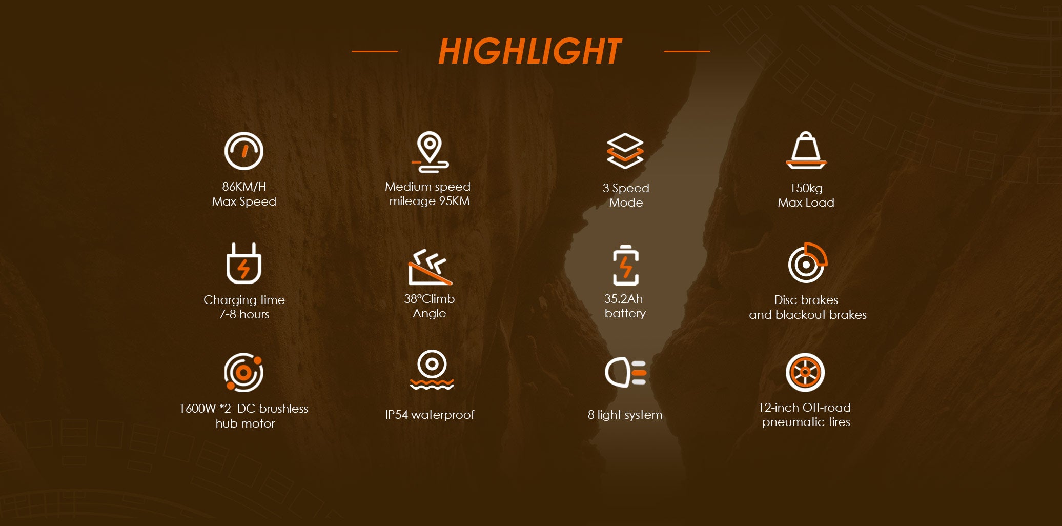 G4 Max equipped with 60V/1600W*2 motors, it can provide powerful power and torque, making acceleration and climbing easier. The maximum speed can reach 86km/h, which makes it a very fast and exciting electric scooter.